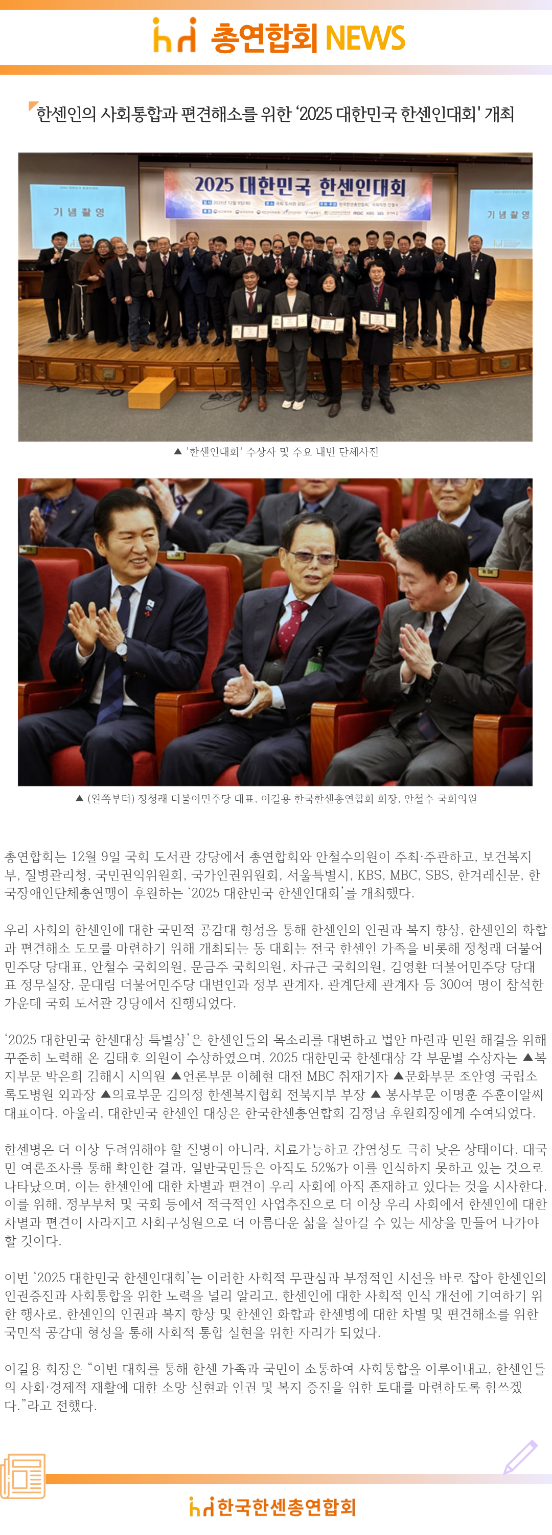 한센인의 사회통합과 편견해소를 위한 ‘2025 대한민국 한센인대회 개최’